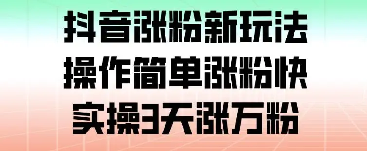 抖音涨粉新玩法,操作简单涨粉快,实操3天涨万粉