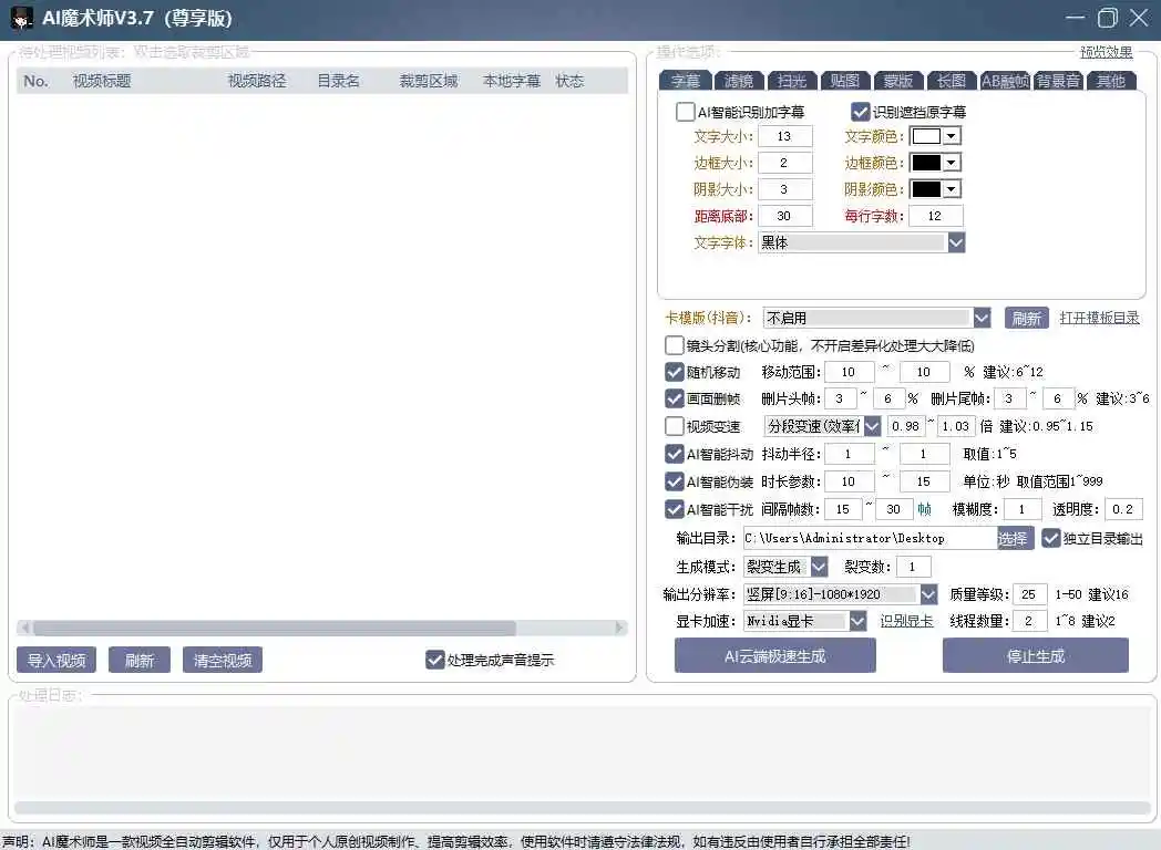 AI魔术师3.7版本尊享版,短视频搬运,一刀不剪原创