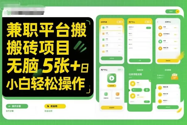 兼职平台搬砖项目无脑操作日入5张+小白轻松操作